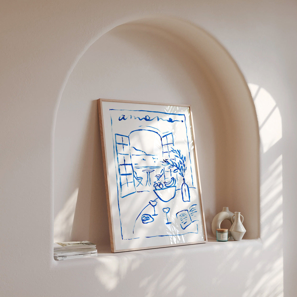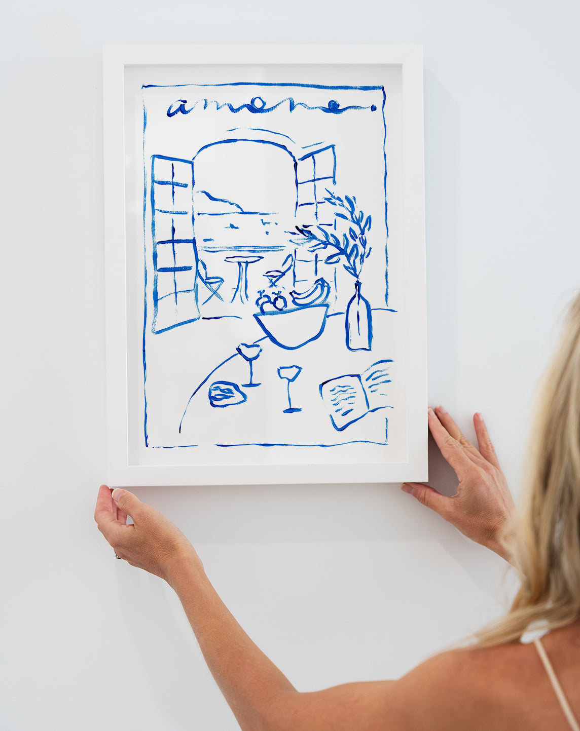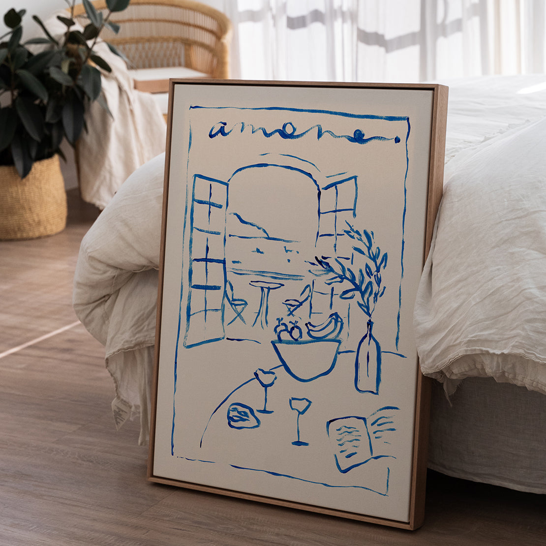 Hand-painted in Cass's expressive brushstrokes, "Amore" (meaning LOVE in Italian) captures the carefree spirit of the Mediterranean coastline. "Amore" invites a sense of calm and ease, bringing that European summer holiday vibe into any space!