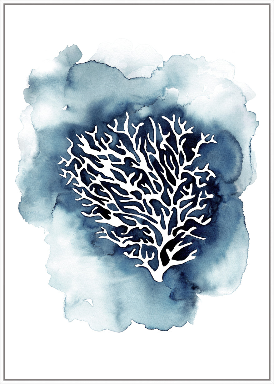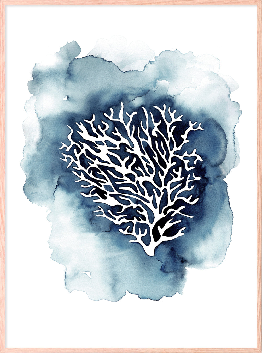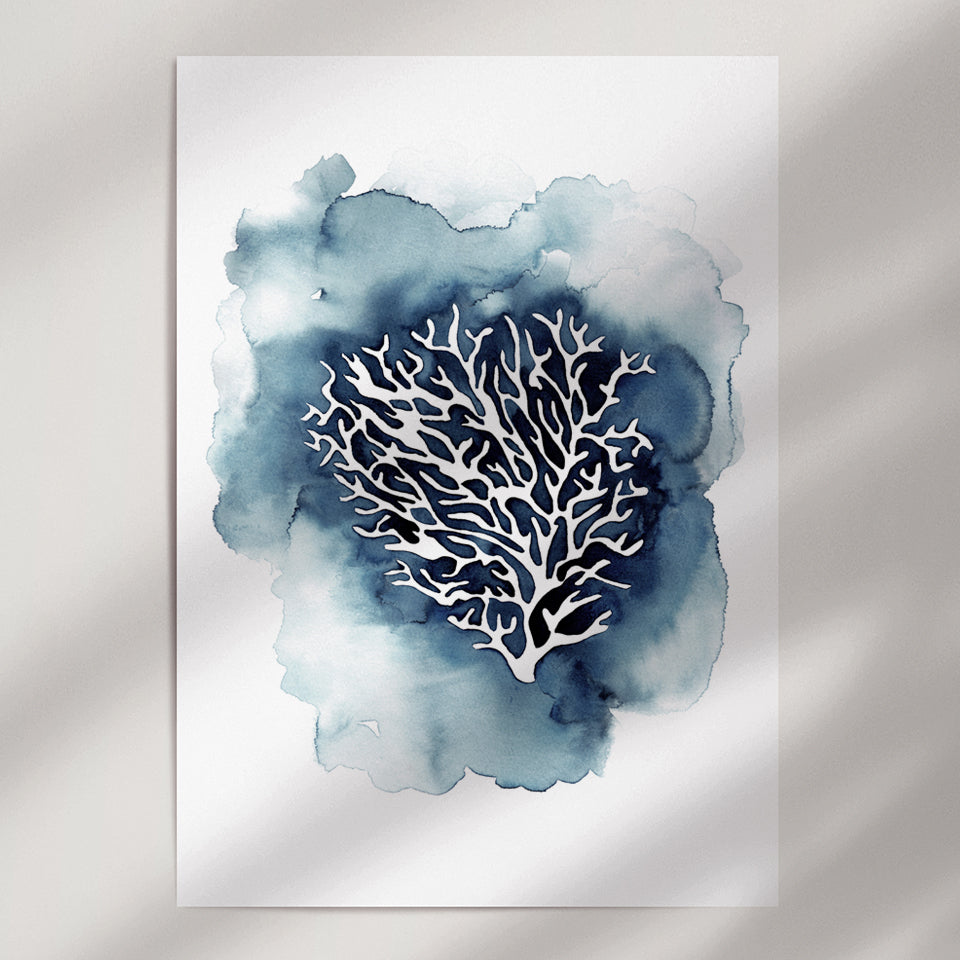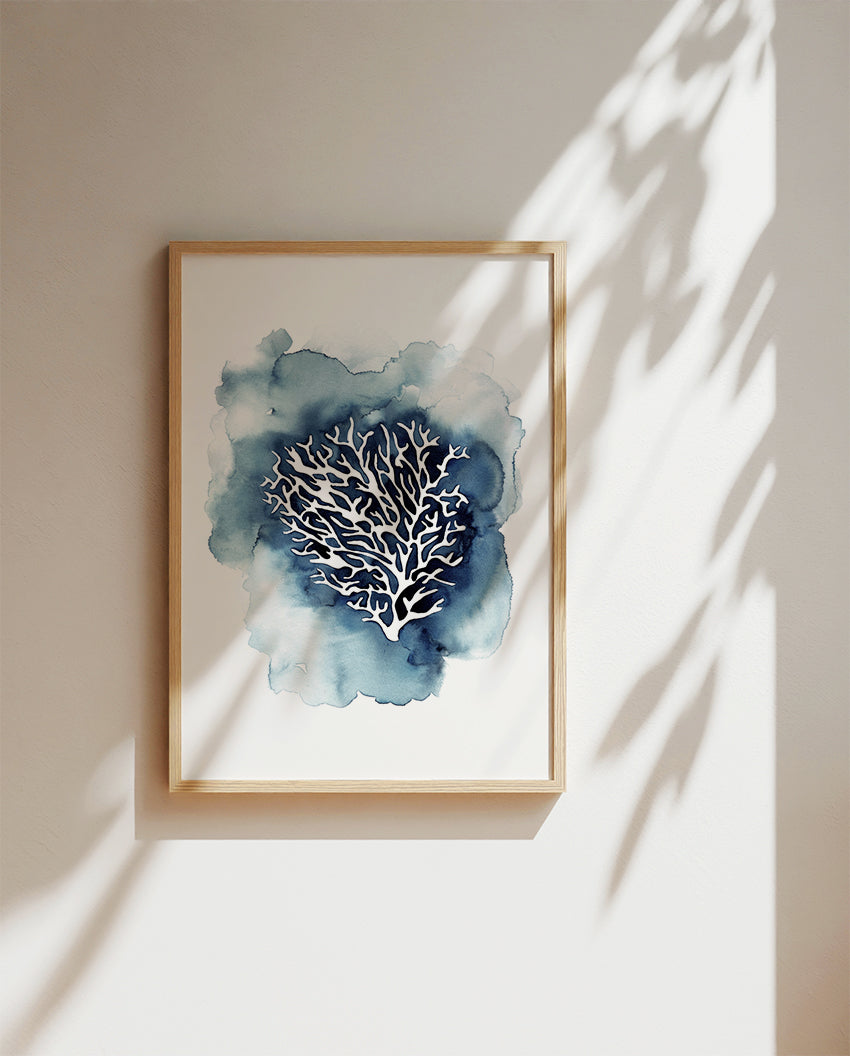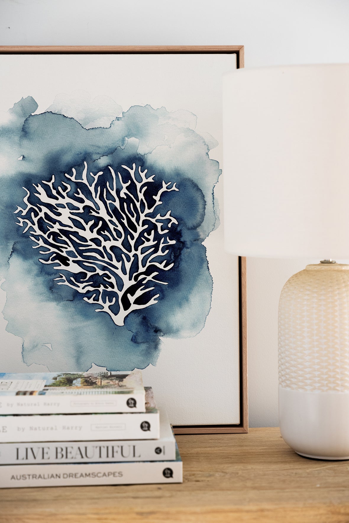 With the natural structural beauty of coral as a focal point, this piece features Intuitive watercolour washes that create a dreamy abstract piece, imbued with coastal calm.