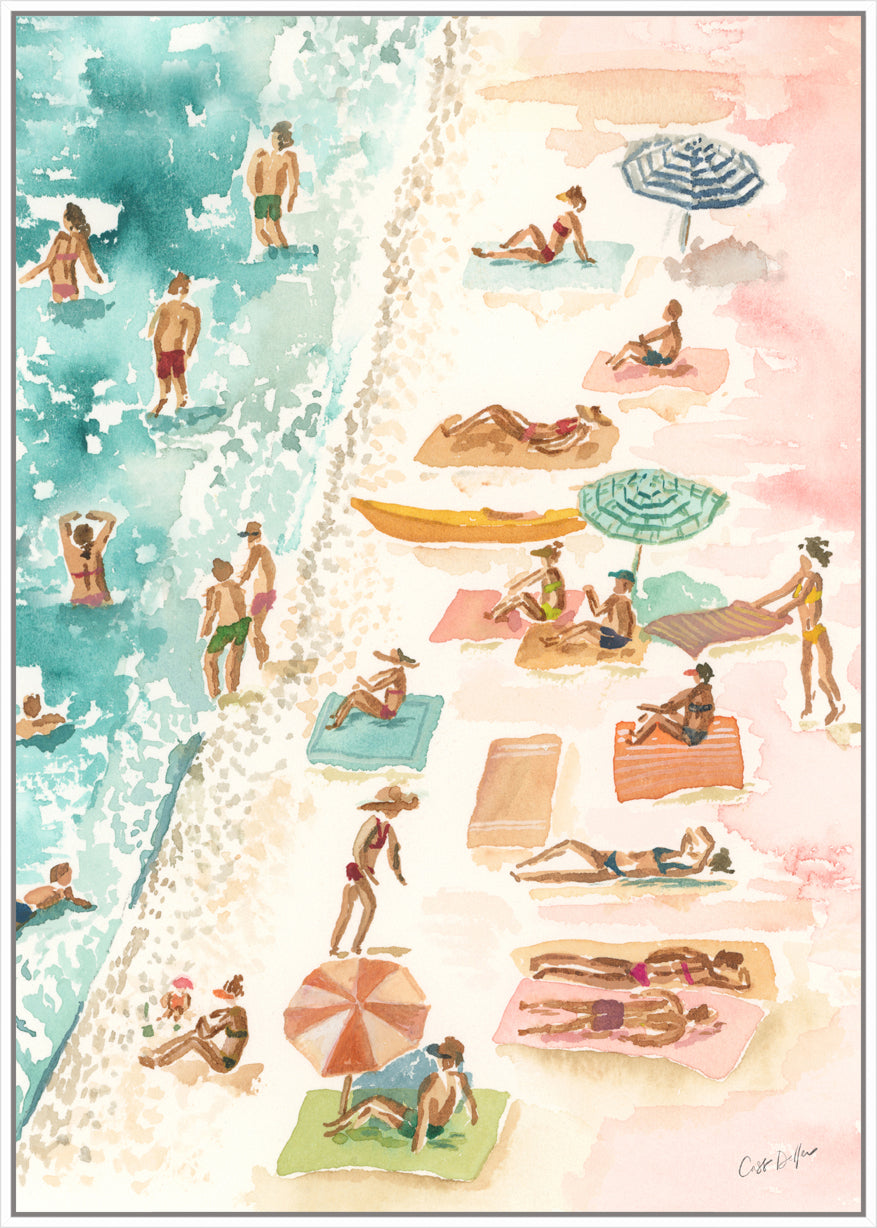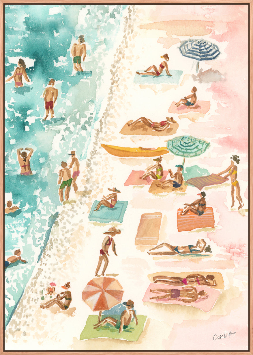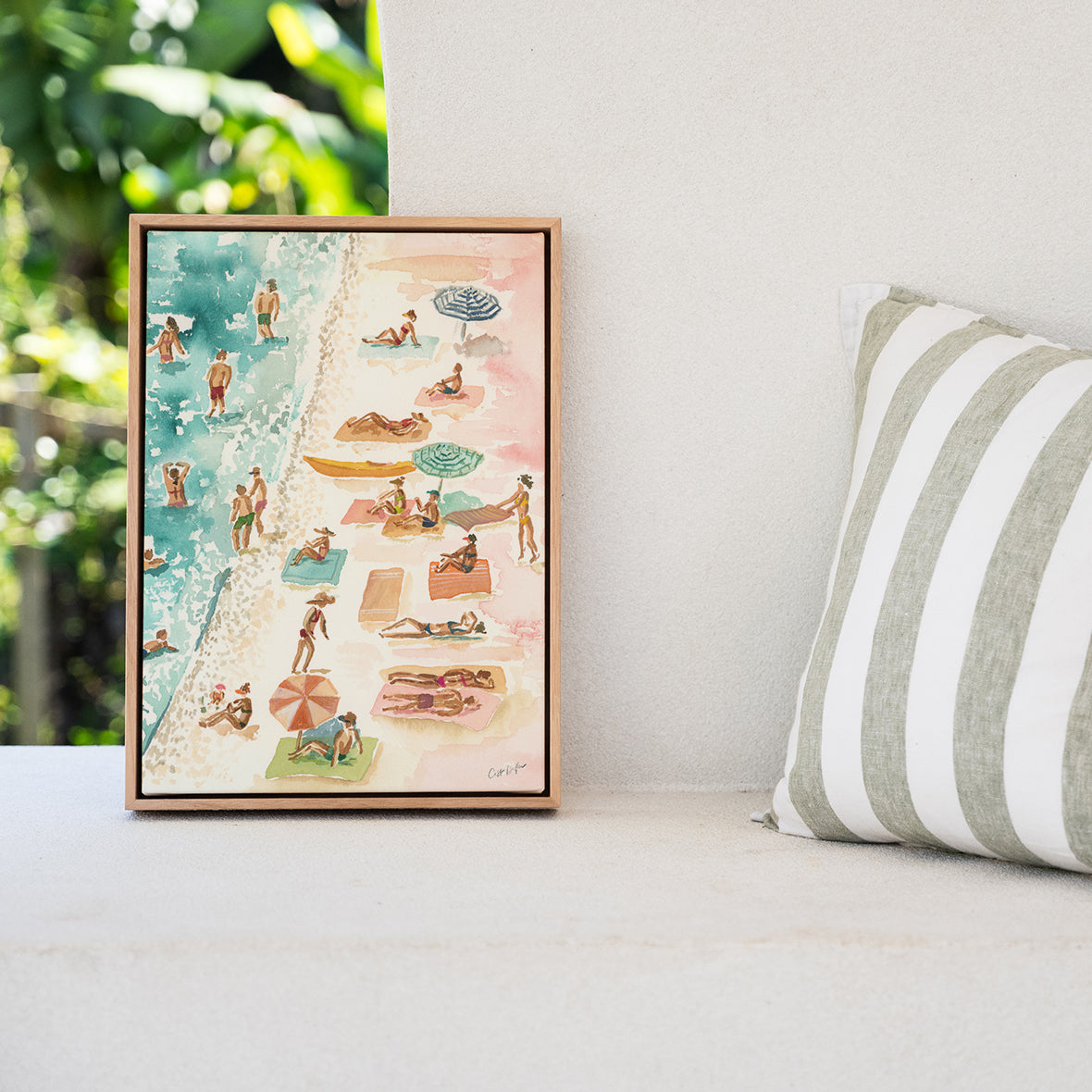 People watching, chic bikinis, bright umbrellas and that surf-tousled hair - Beach Please celebrates the iconic Aussie beach lifestyle. Hand-painted in bright summer hues, this piece makes a fun and joyful addition to any space.