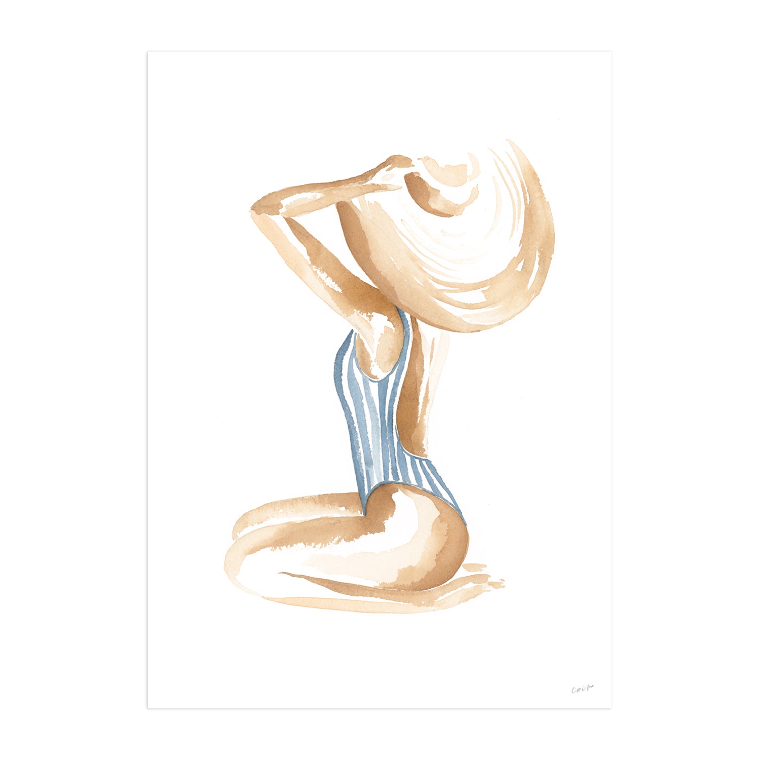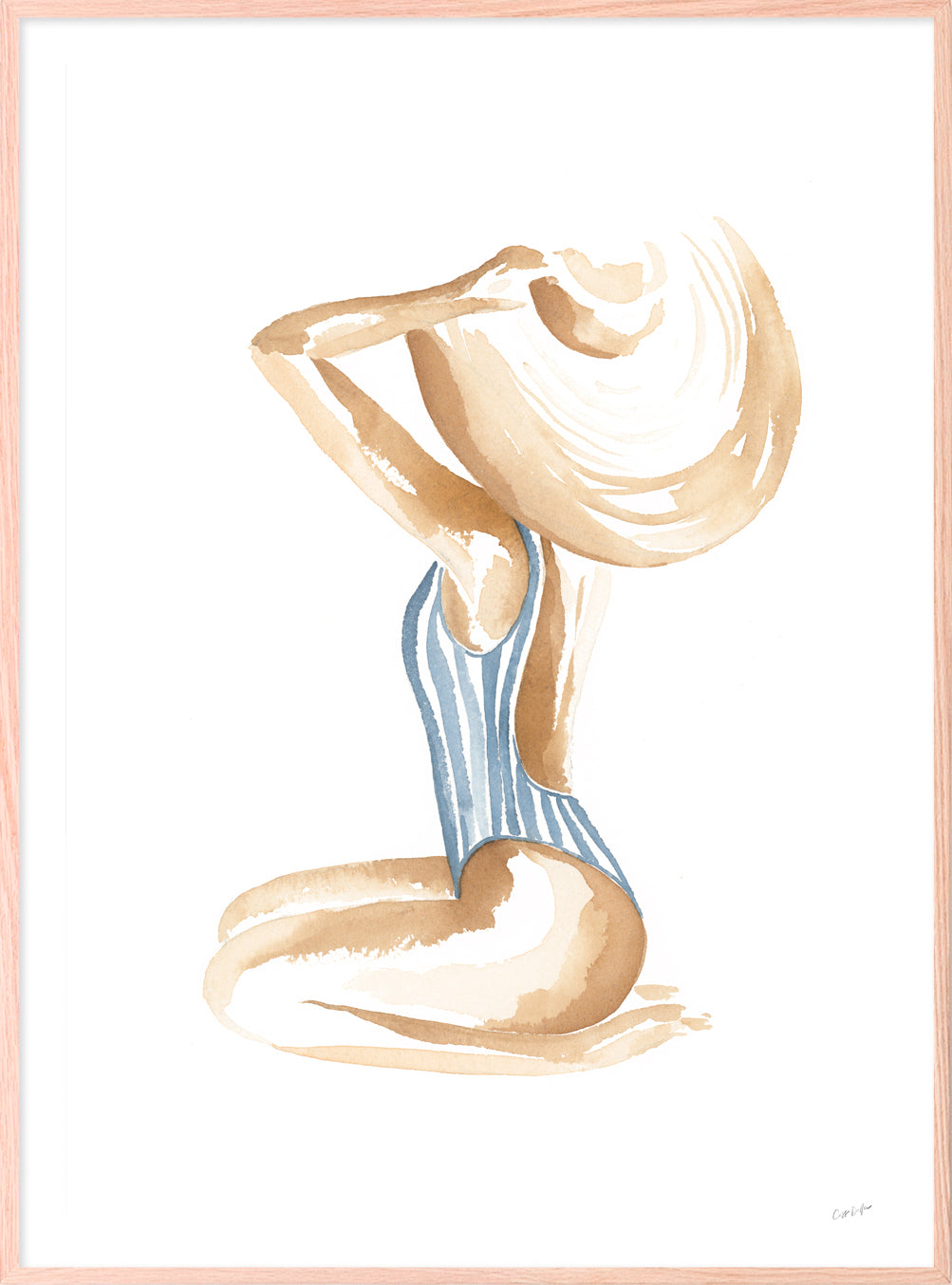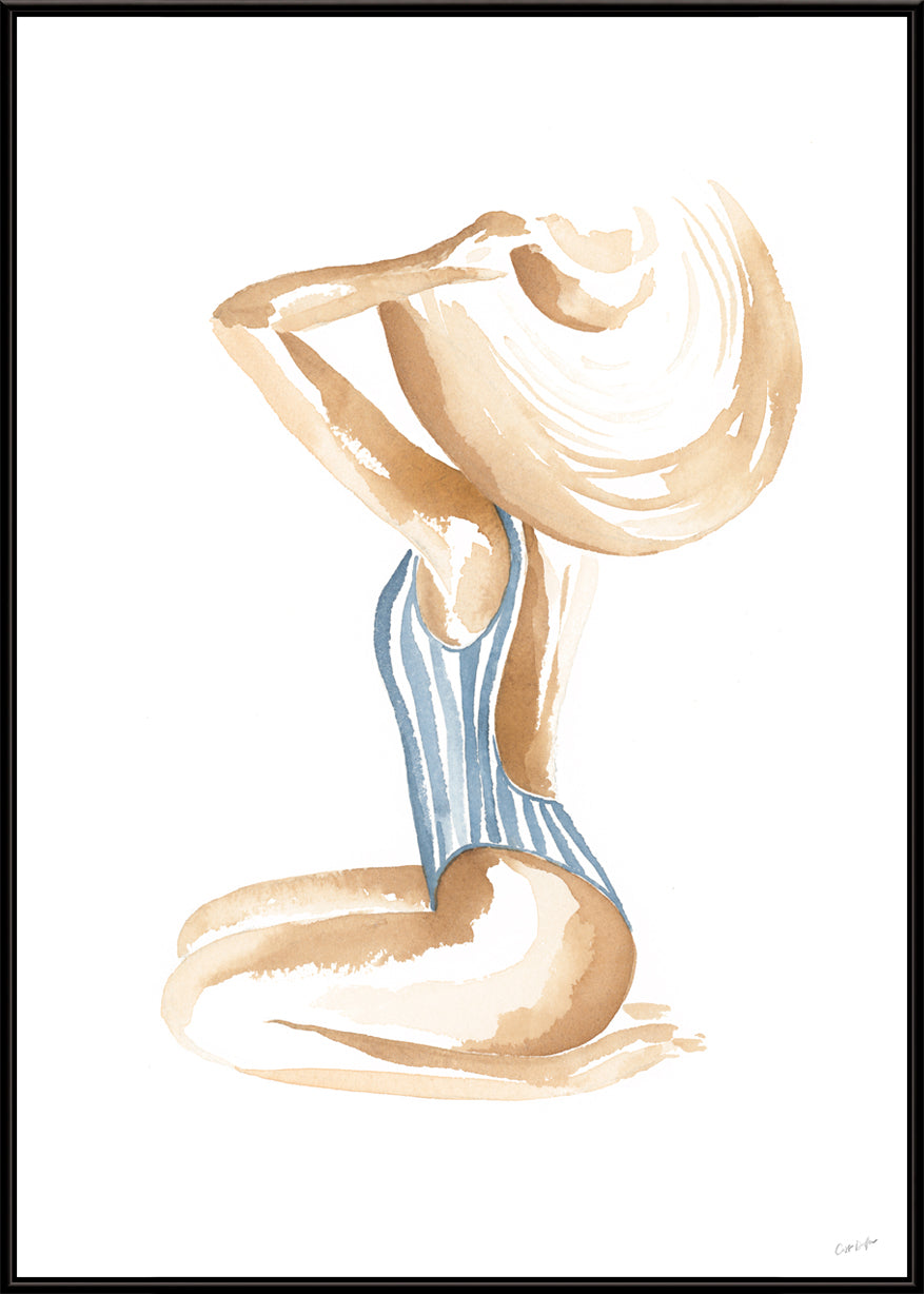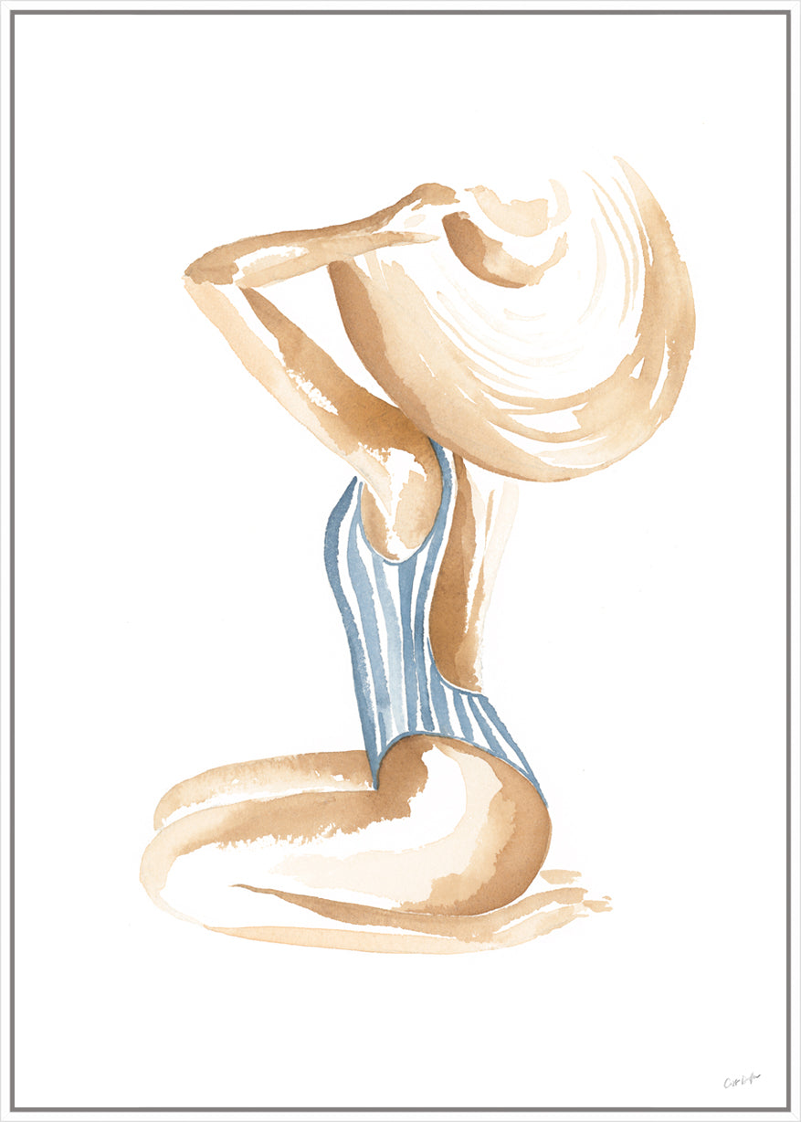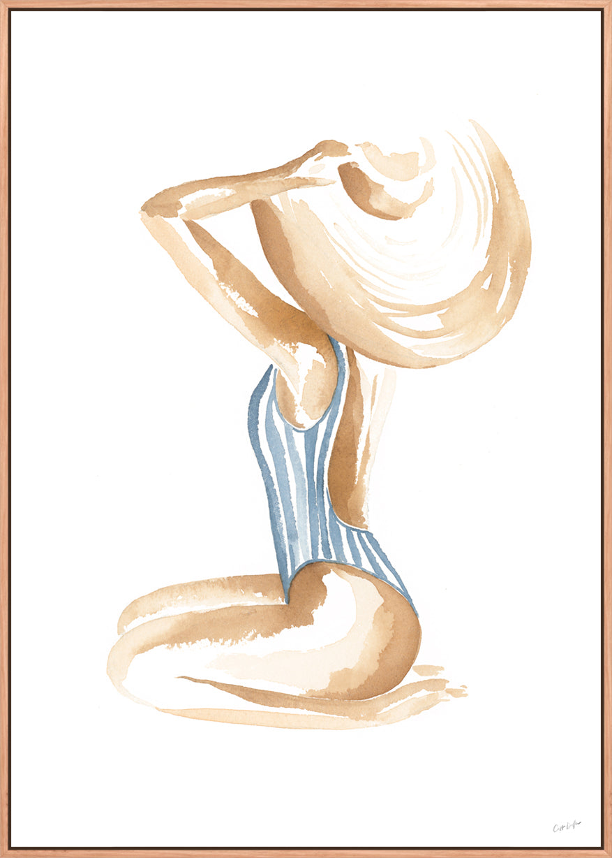 Breezy Beach Babe conjures up visions of sun-kissed skin, tan lines and salty beach waves - hand painted in watercolour, this piece will bring effortless coastal style into any space.