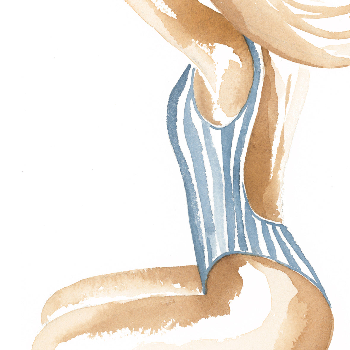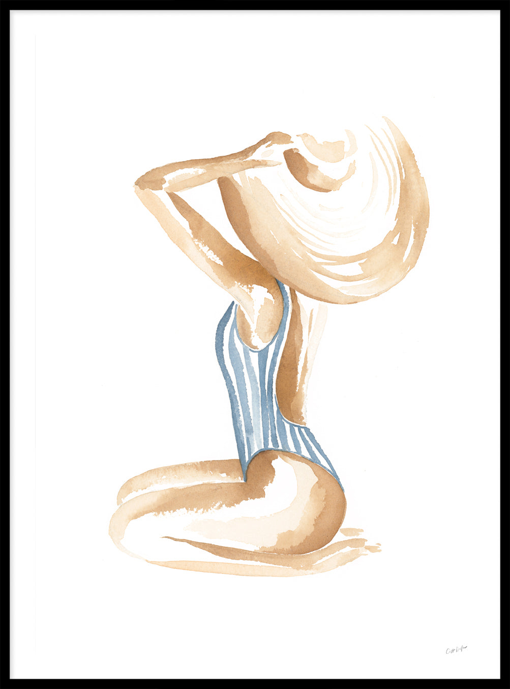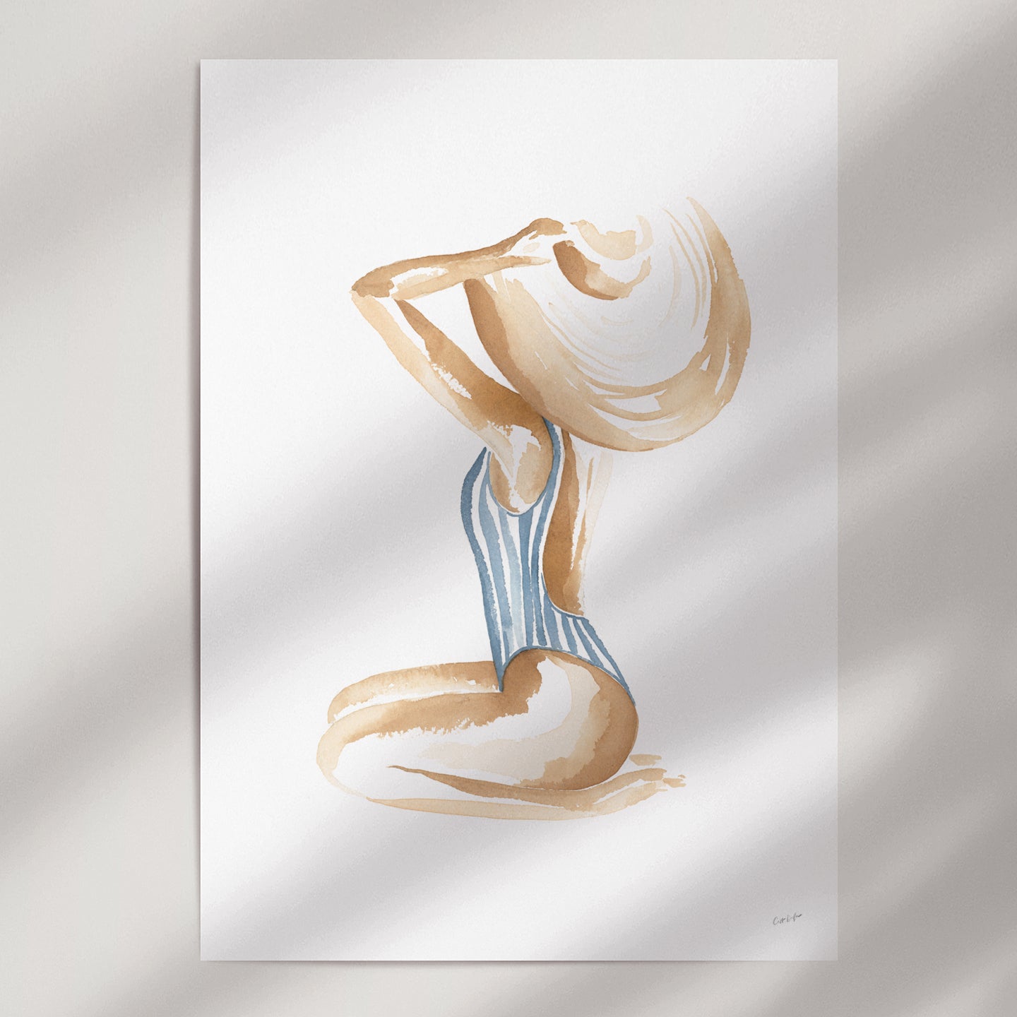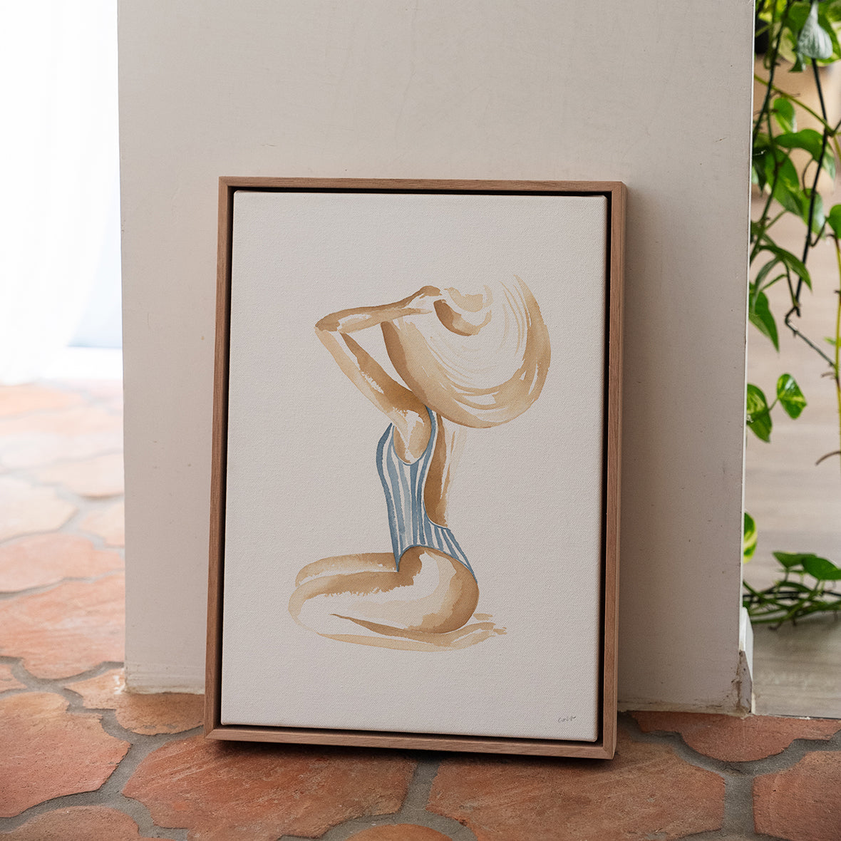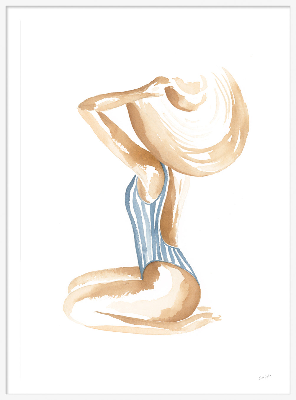 Breezy Beach Babe conjures up visions of sun-kissed skin, tan lines and salty beach waves - hand painted in watercolour, this piece will bring effortless coastal style into any space.