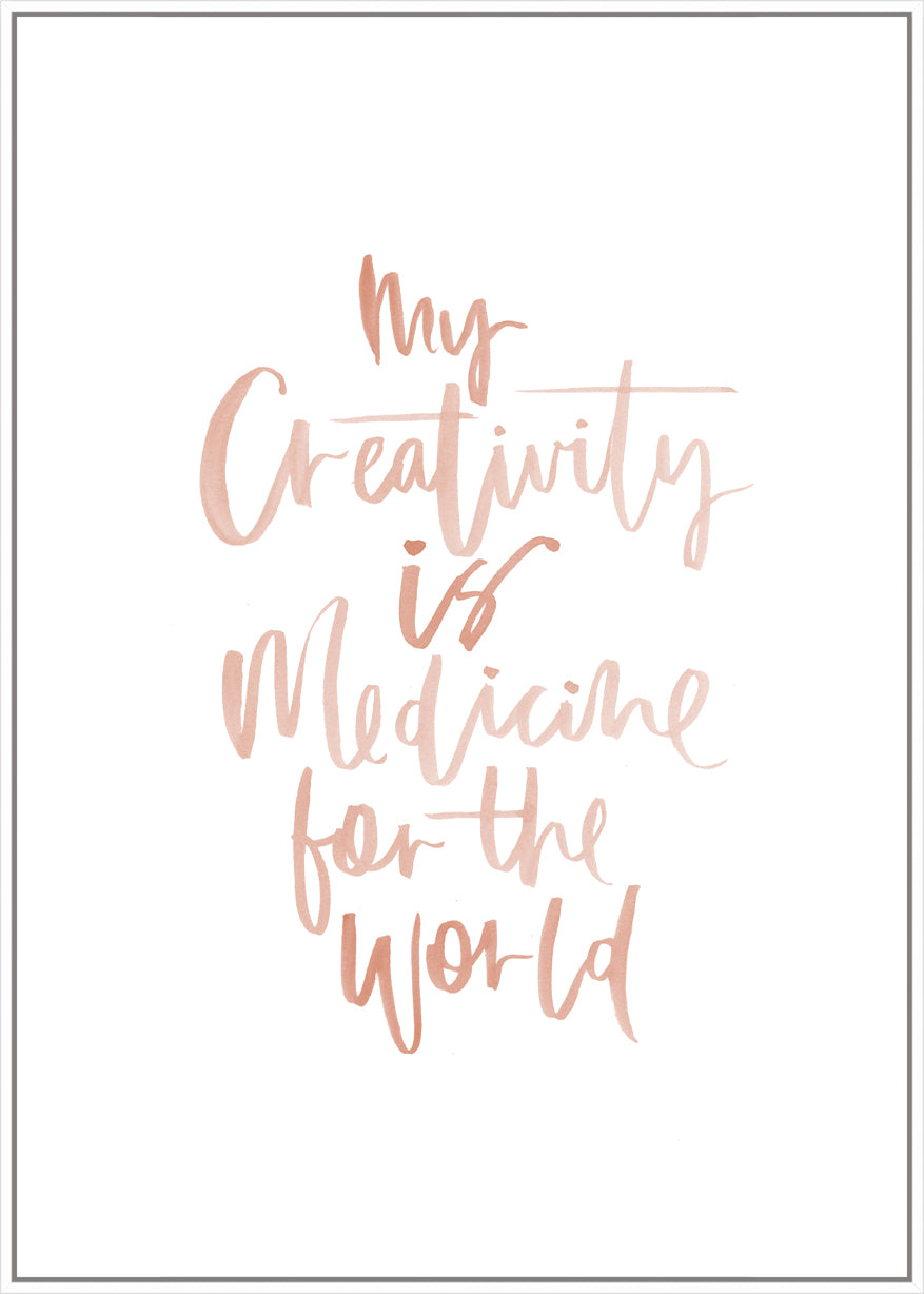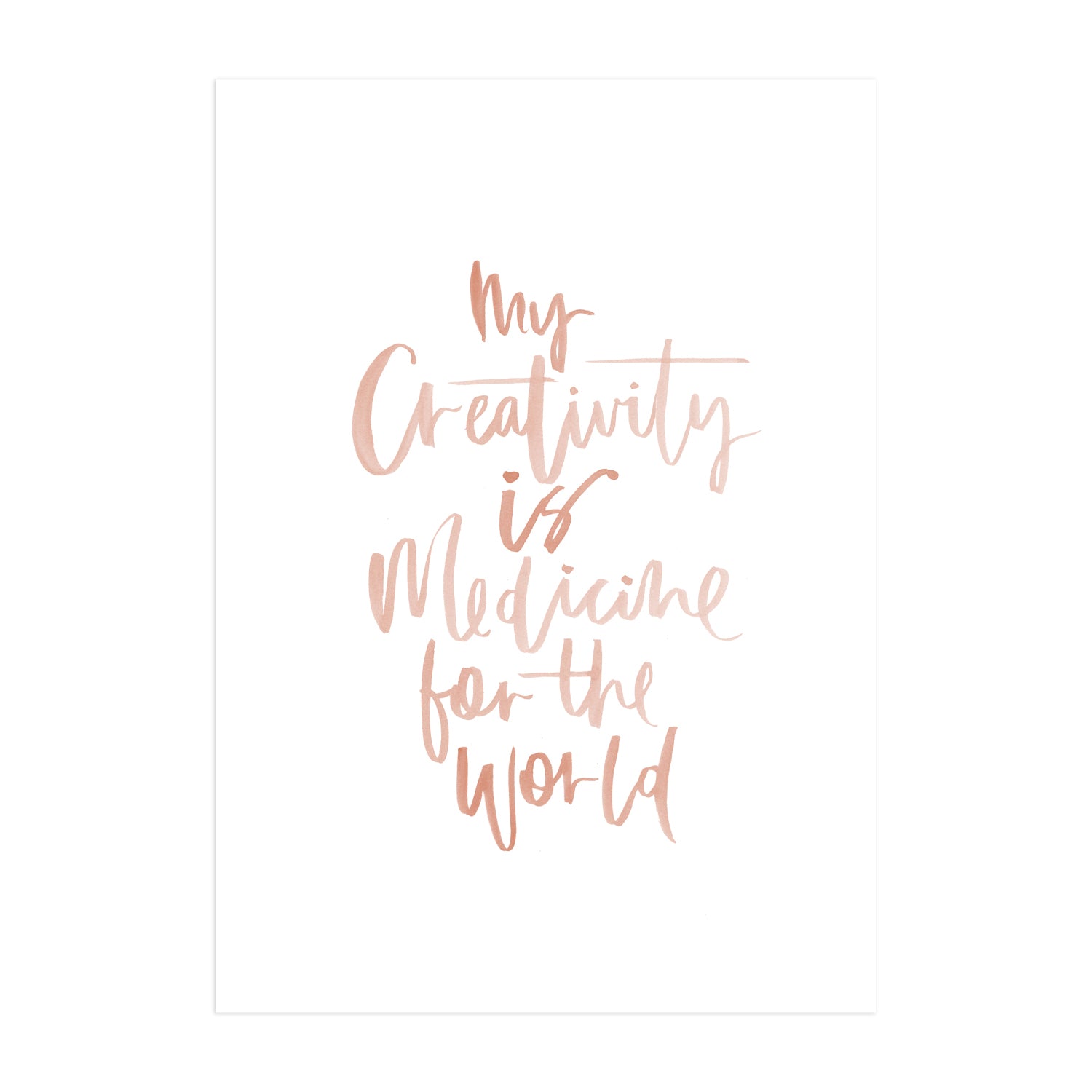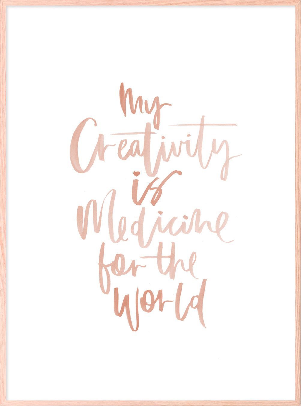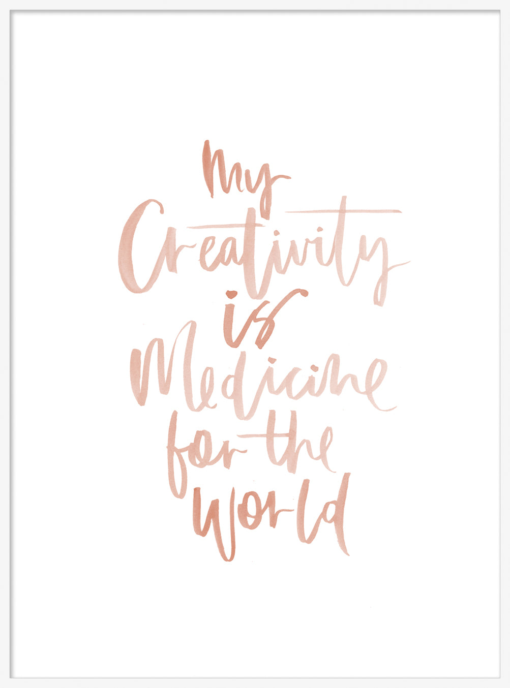 In stunning blue tones, this beautiful hand-lettered piece is a reminder to all creatives that their unique gifts are medicine for this world. Keep shining your light.