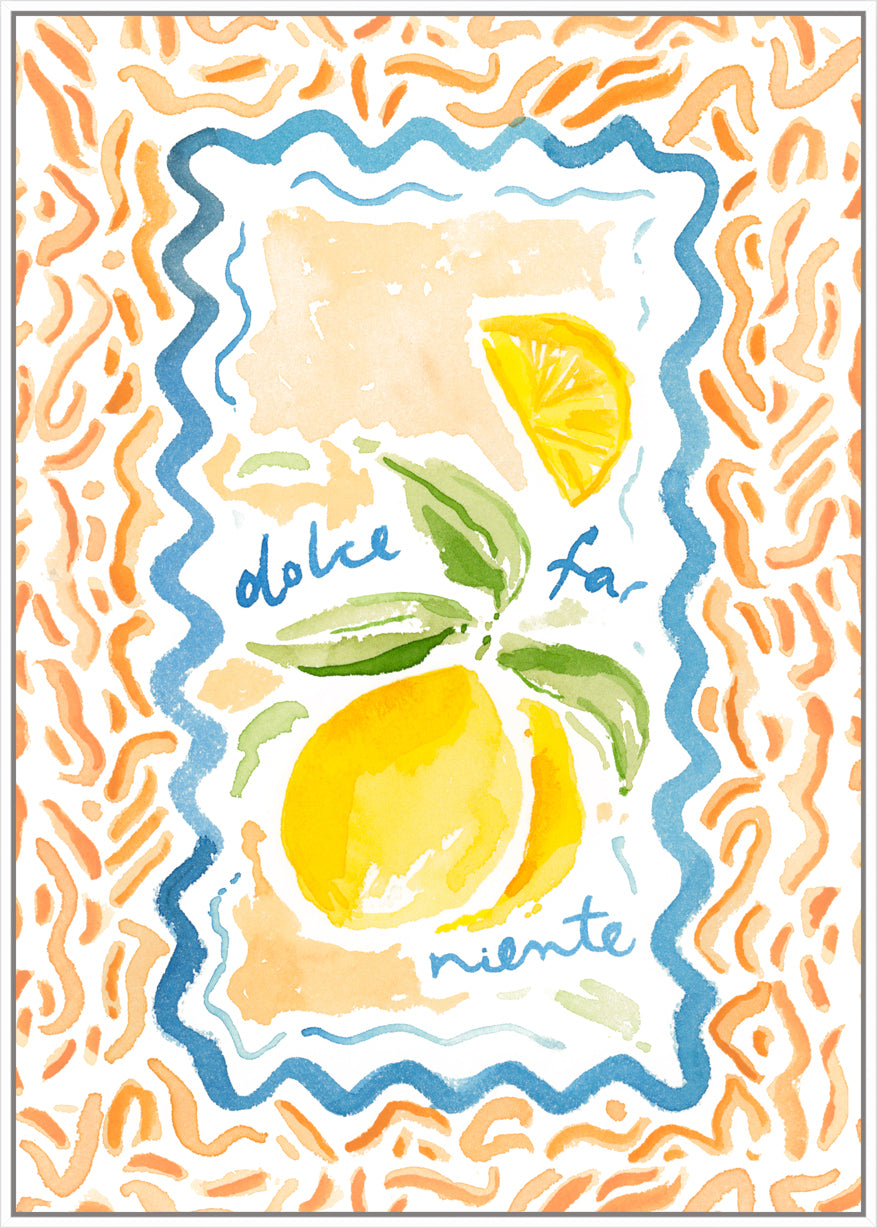 Dolce far niente (literally 'sweetness [of] doing nothing, sweet idleness') is an Italian saying. Created for the daydreamers, this piece will take allow you to bring a sense of carefree frivolity into your space. A reminder to simply slow down, unplug and enjoy the simple things in life - Mediterranean style!