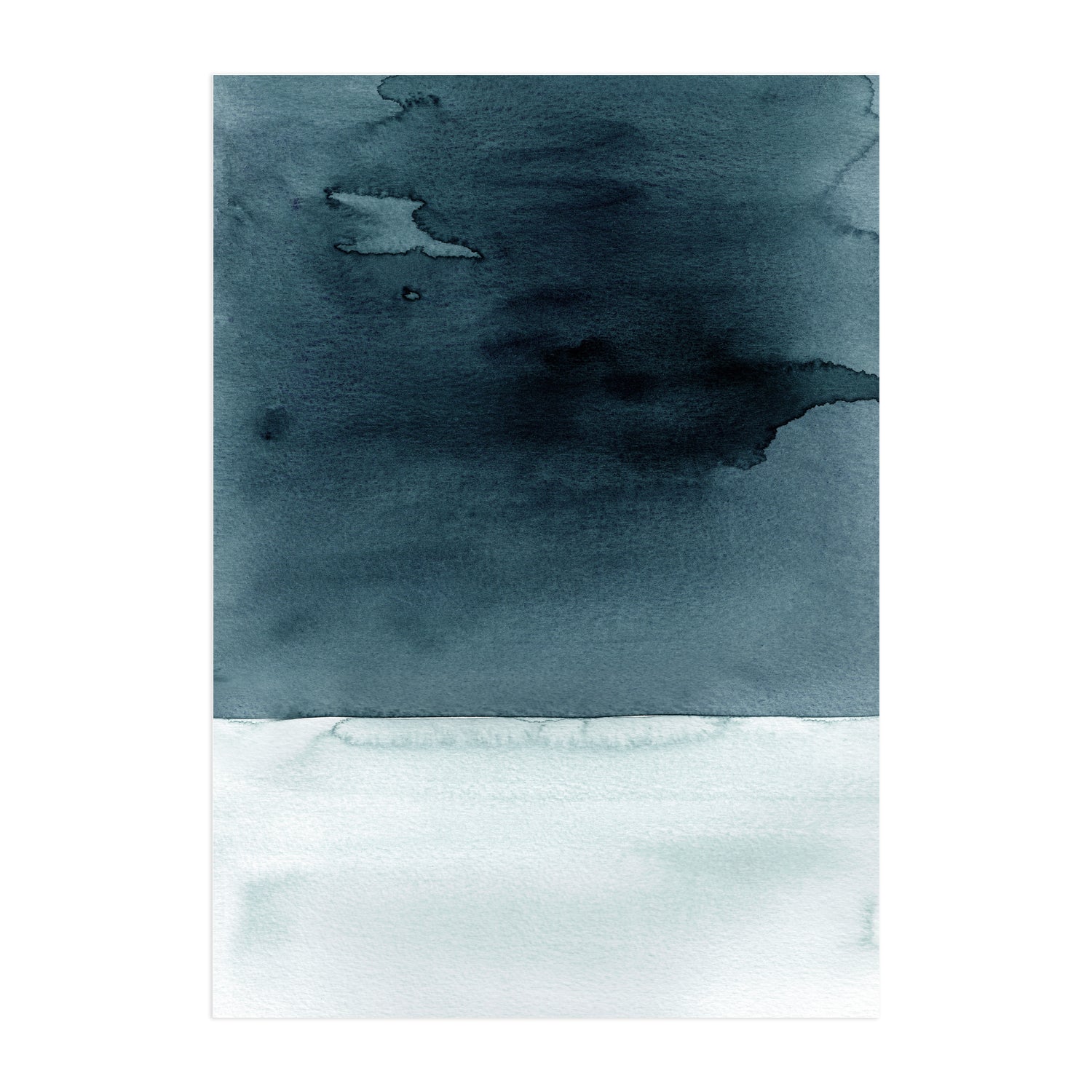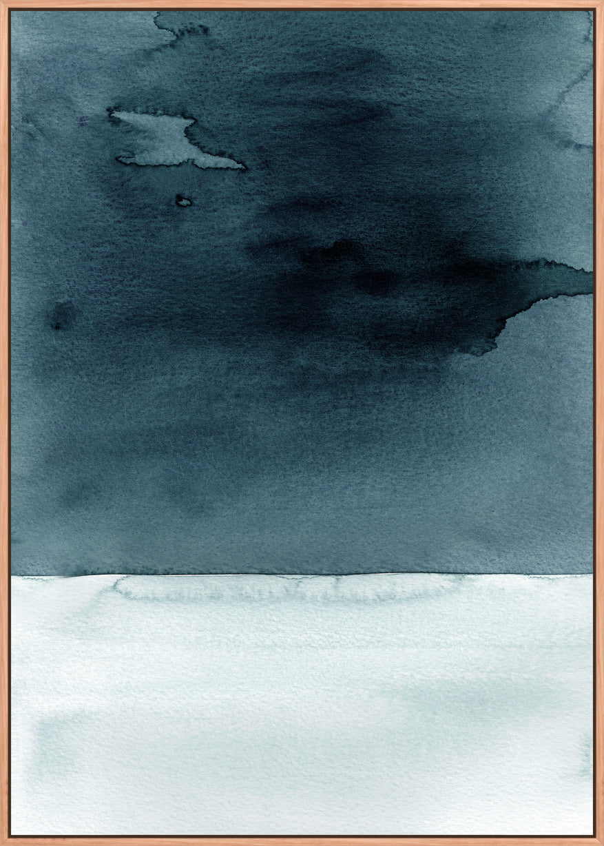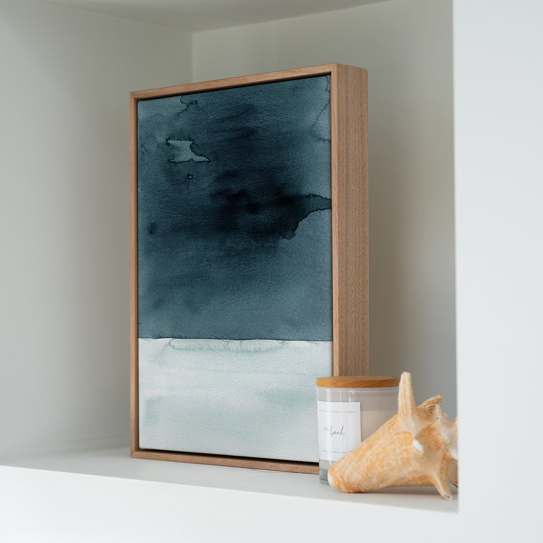 Blurred watercolour edges and coastal blues come together in this stunning abstract piece to bring a sense of reflective expansion and calm to any space.
