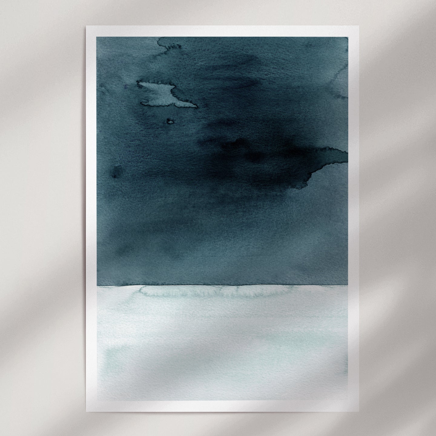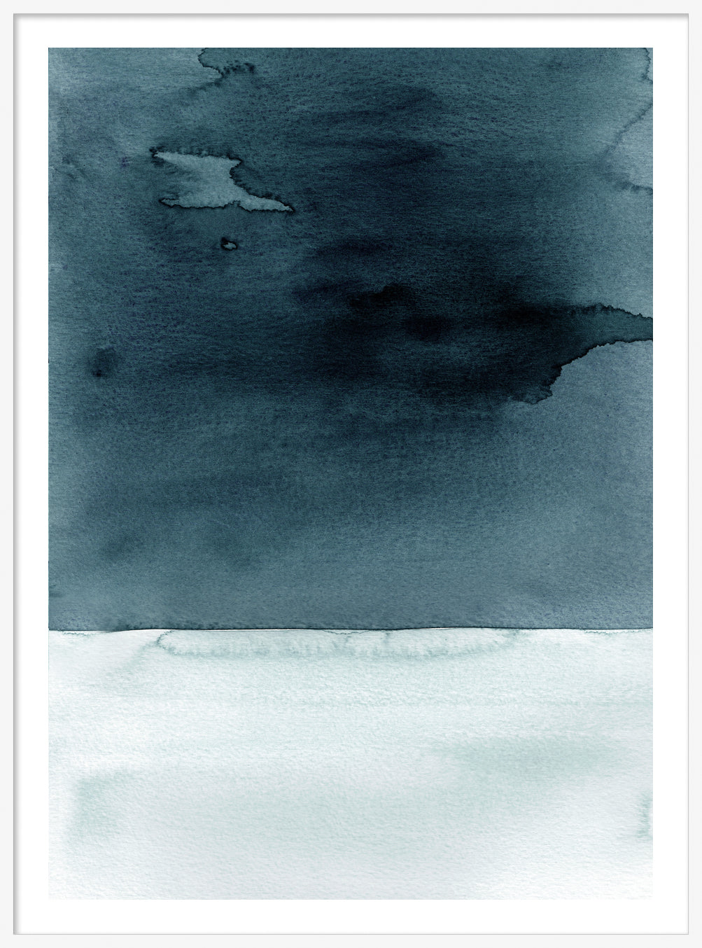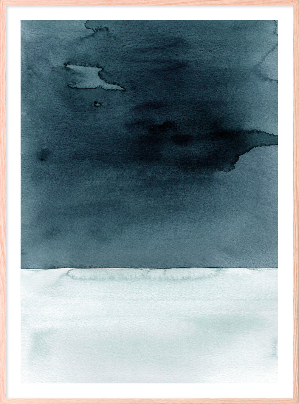 Blurred watercolour edges and coastal blues come together in this stunning abstract piece to bring a sense of reflective expansion and calm to any space.