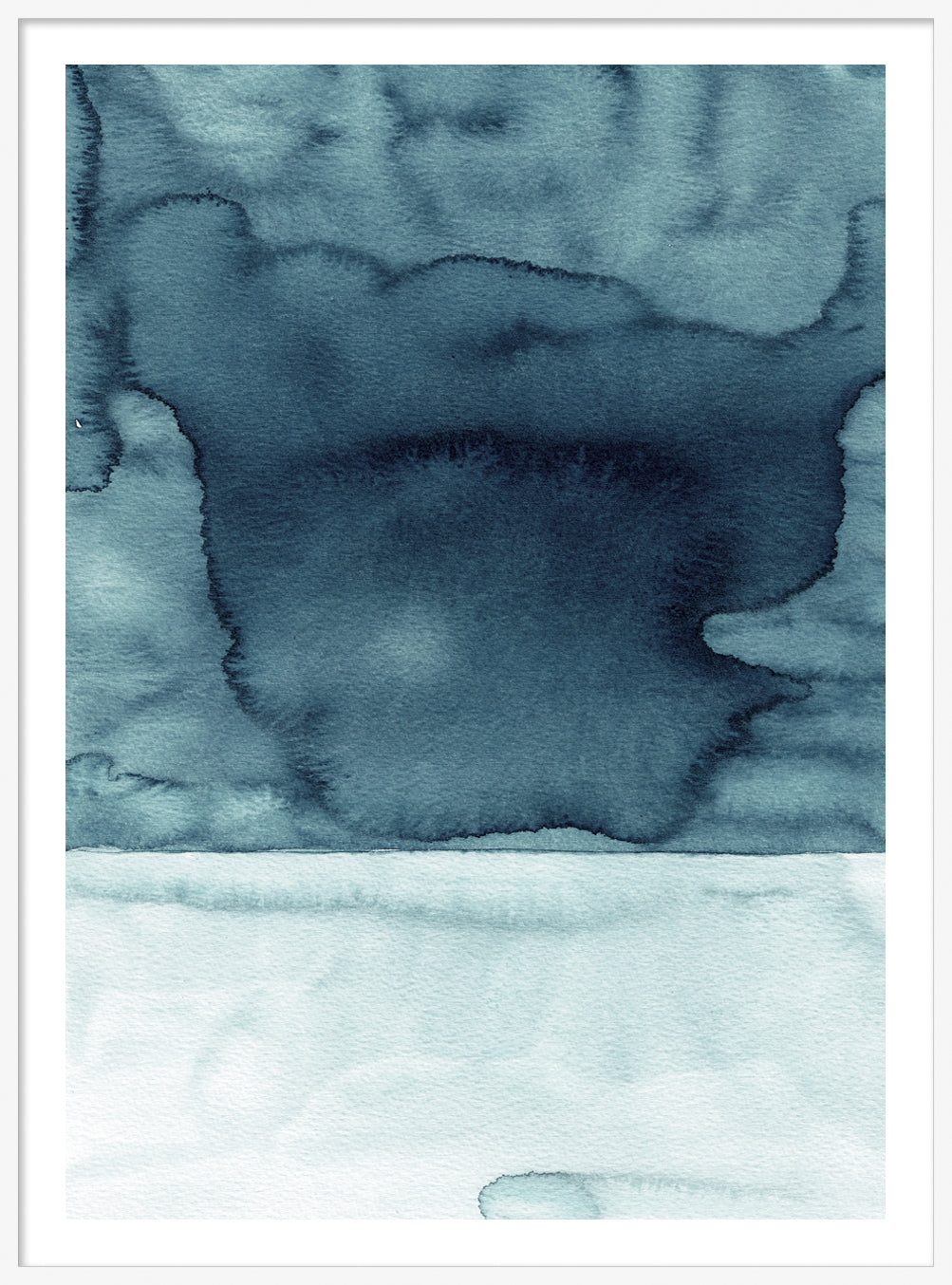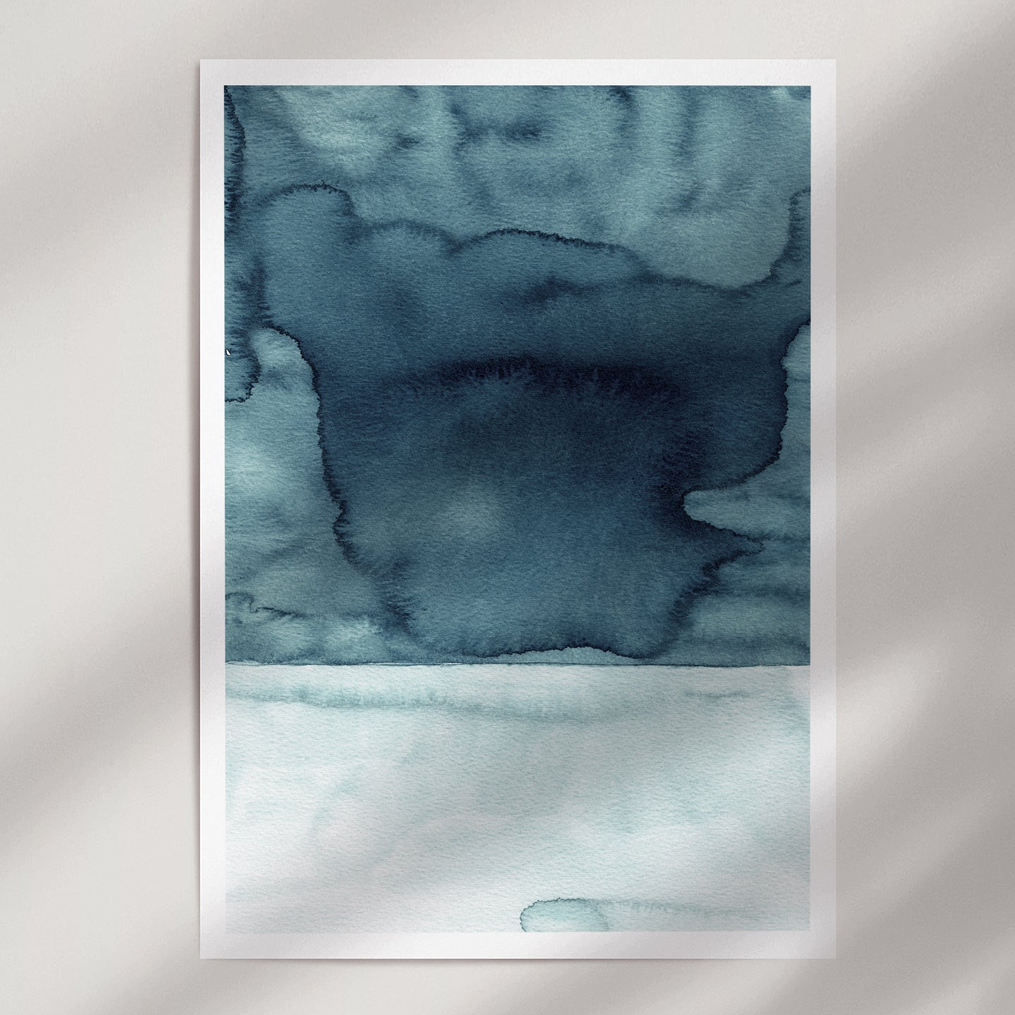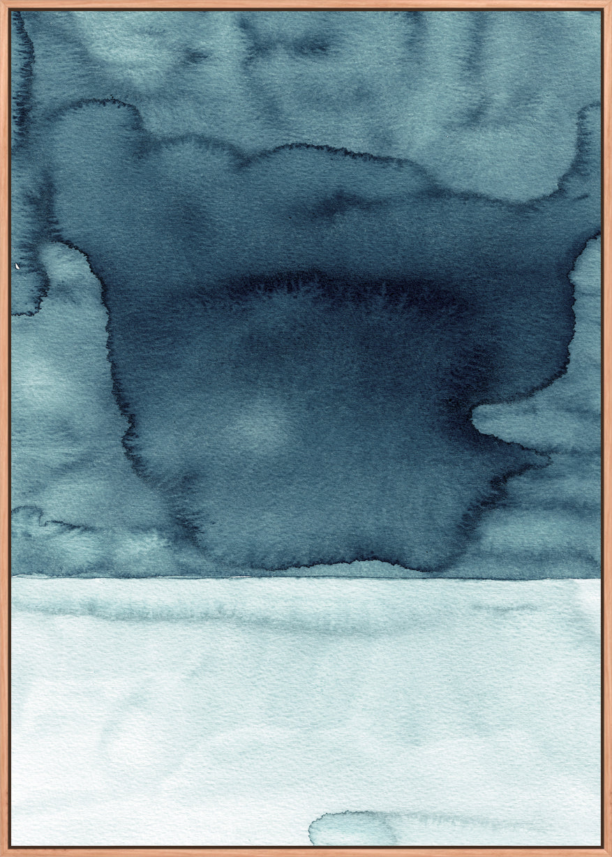 Blurred watercolour edges and coastal blues come together in this stunning abstract piece to bring a sense of reflective expansion and calm to any space.