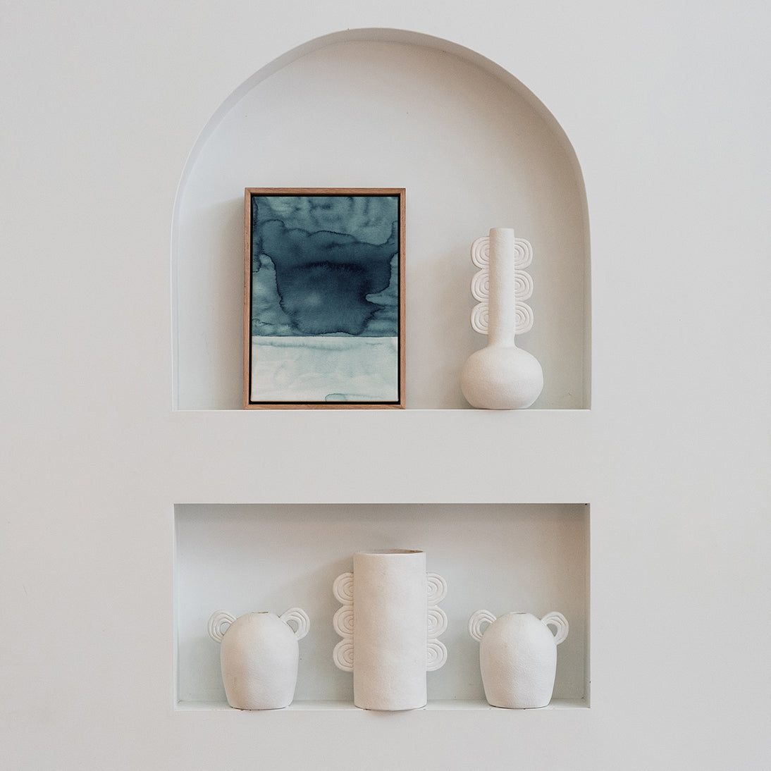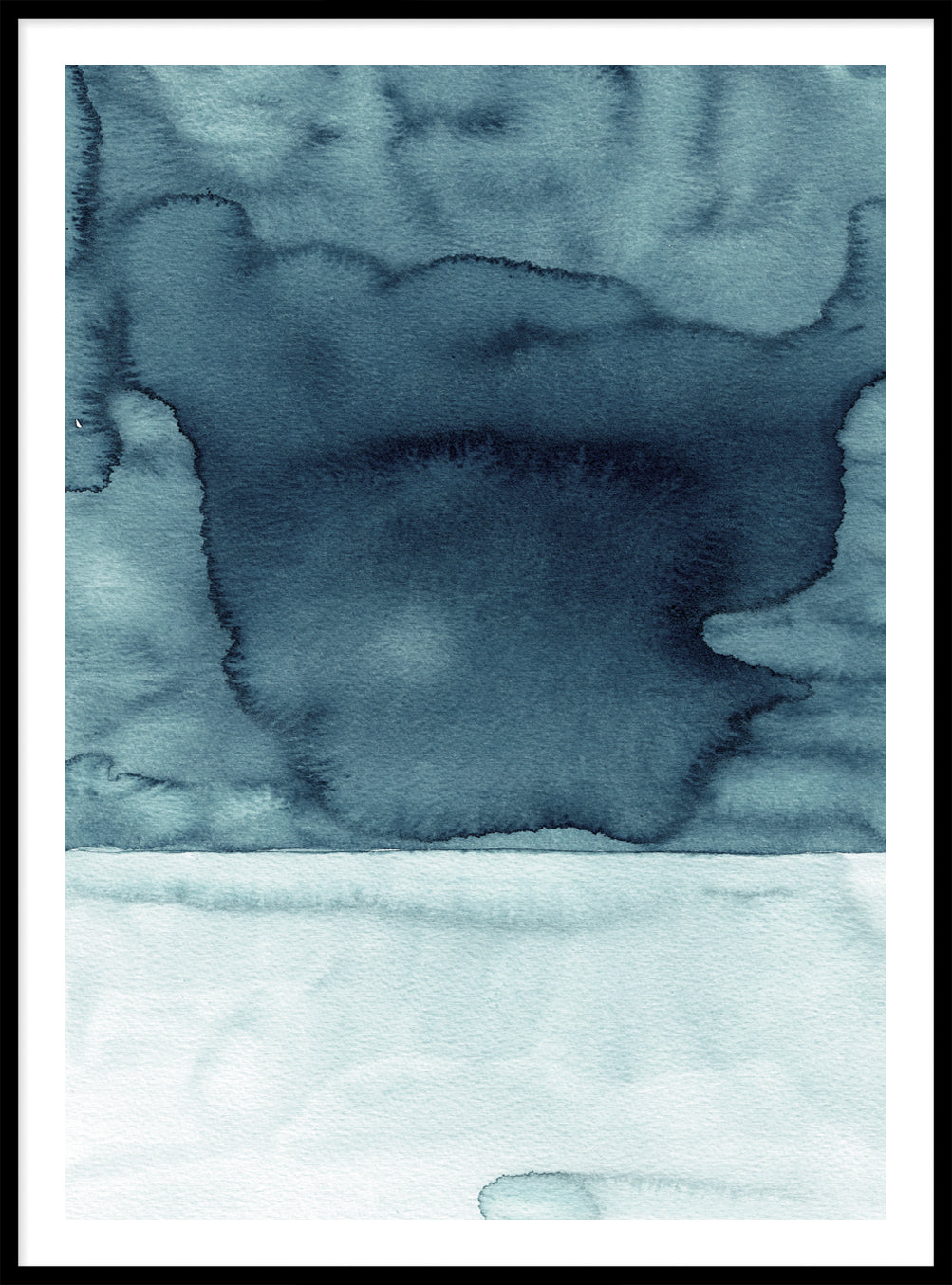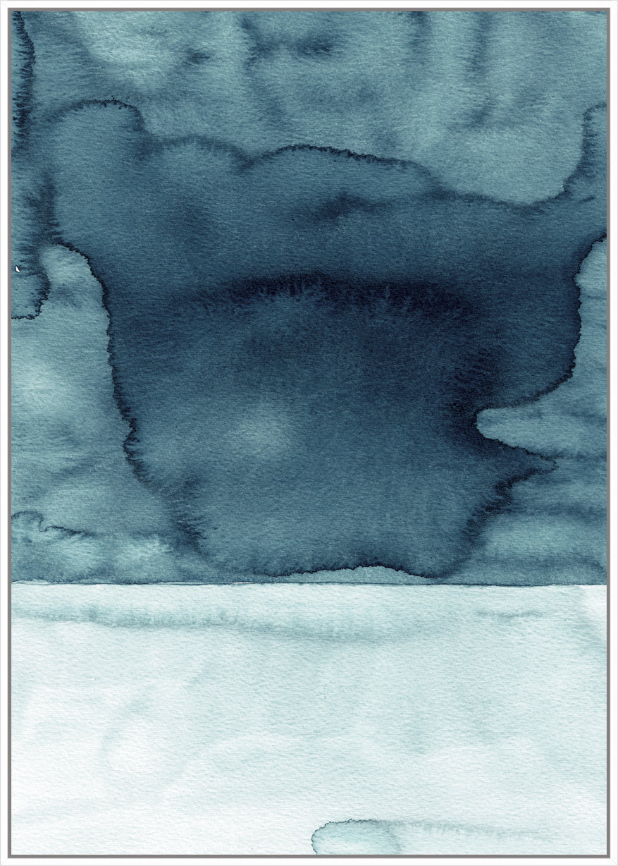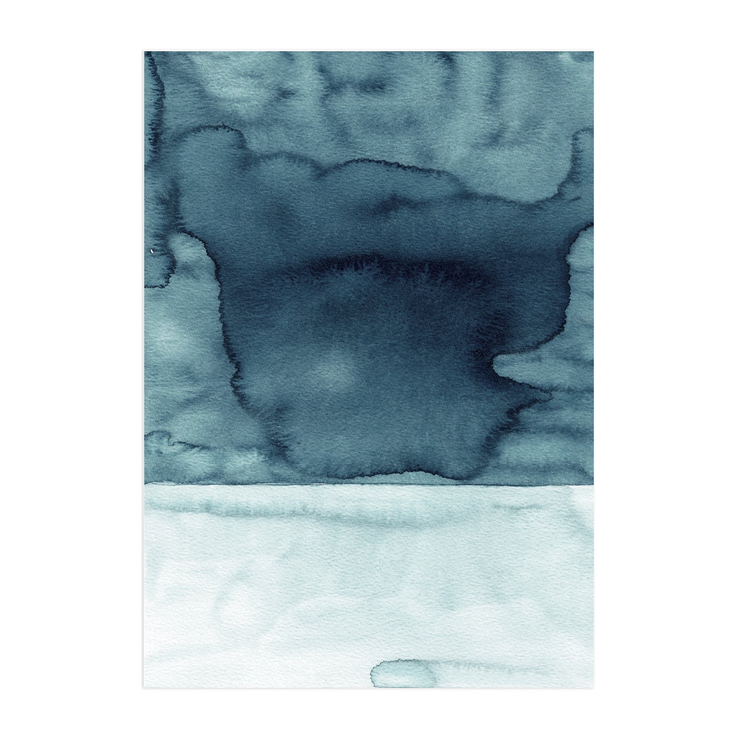 Blurred watercolour edges and coastal blues come together in this stunning abstract piece to bring a sense of reflective expansion and calm to any space.