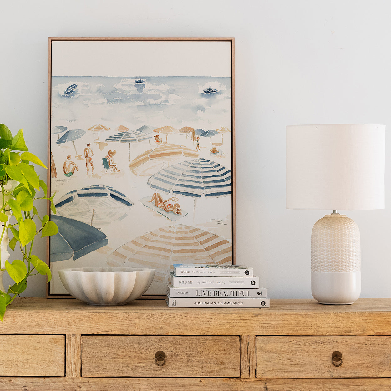 Featuring classic coastal style and inspired by the sunkissed, barefoot days spent beachside, this watercolour piece brings stunning understated luxury to any space.