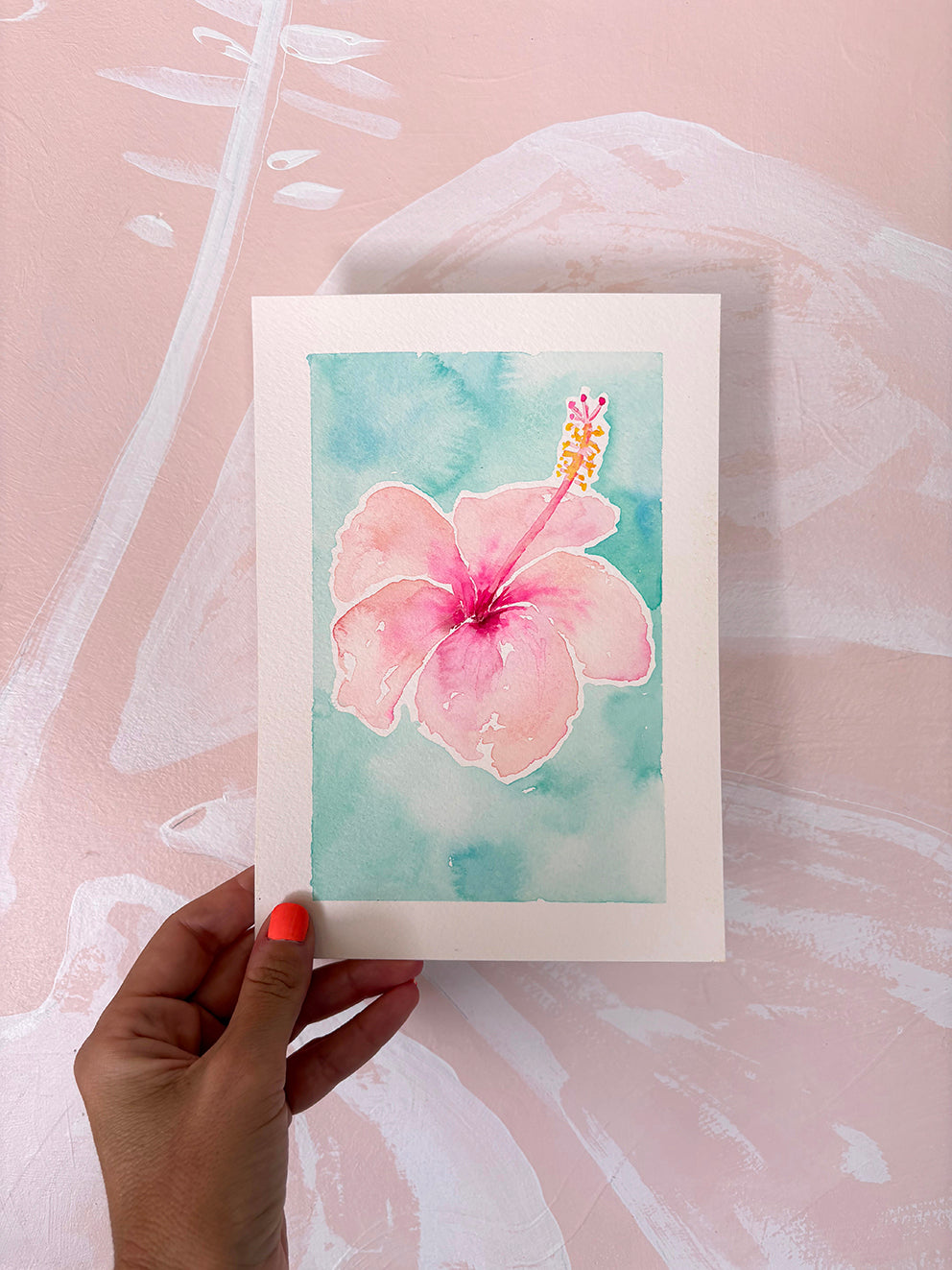 This mini A5 original features one of my beloved hibiscus blooms, delicately painted on watercolour paper. These vibrant flowers are a recurring muse in my work, forever reminding me of cherished childhood holidays in Noosa — sun-drenched days, salty air, and the simple joy of coastal life.