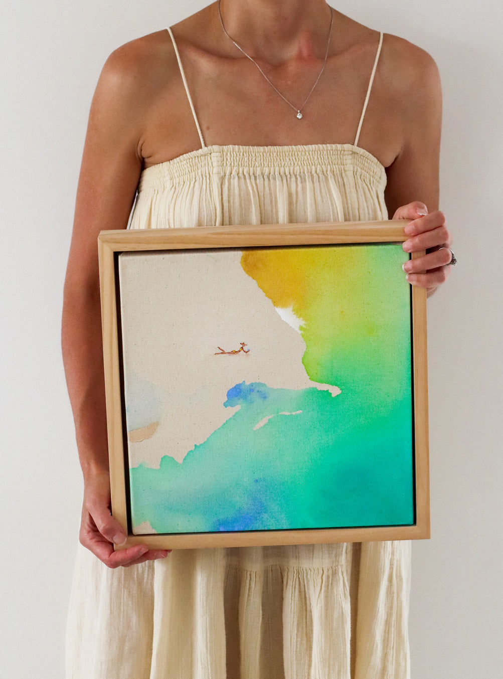 This original canvas collection draws inspiration from the vast, open ocean and the effortless flow of the sea. Featuring lively beachgoers, each piece brings a touch of fun and vibrancy, capturing the essence of sunny beach days.