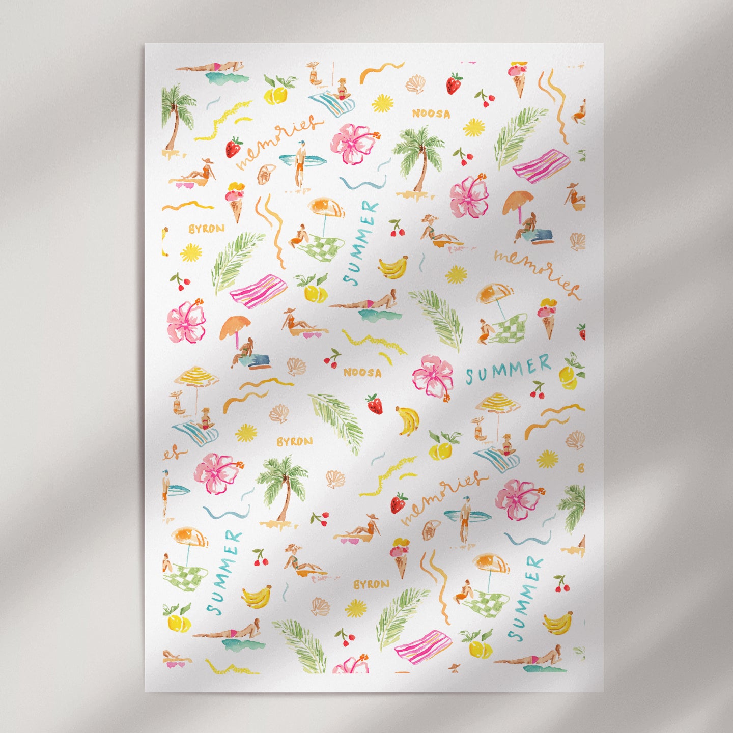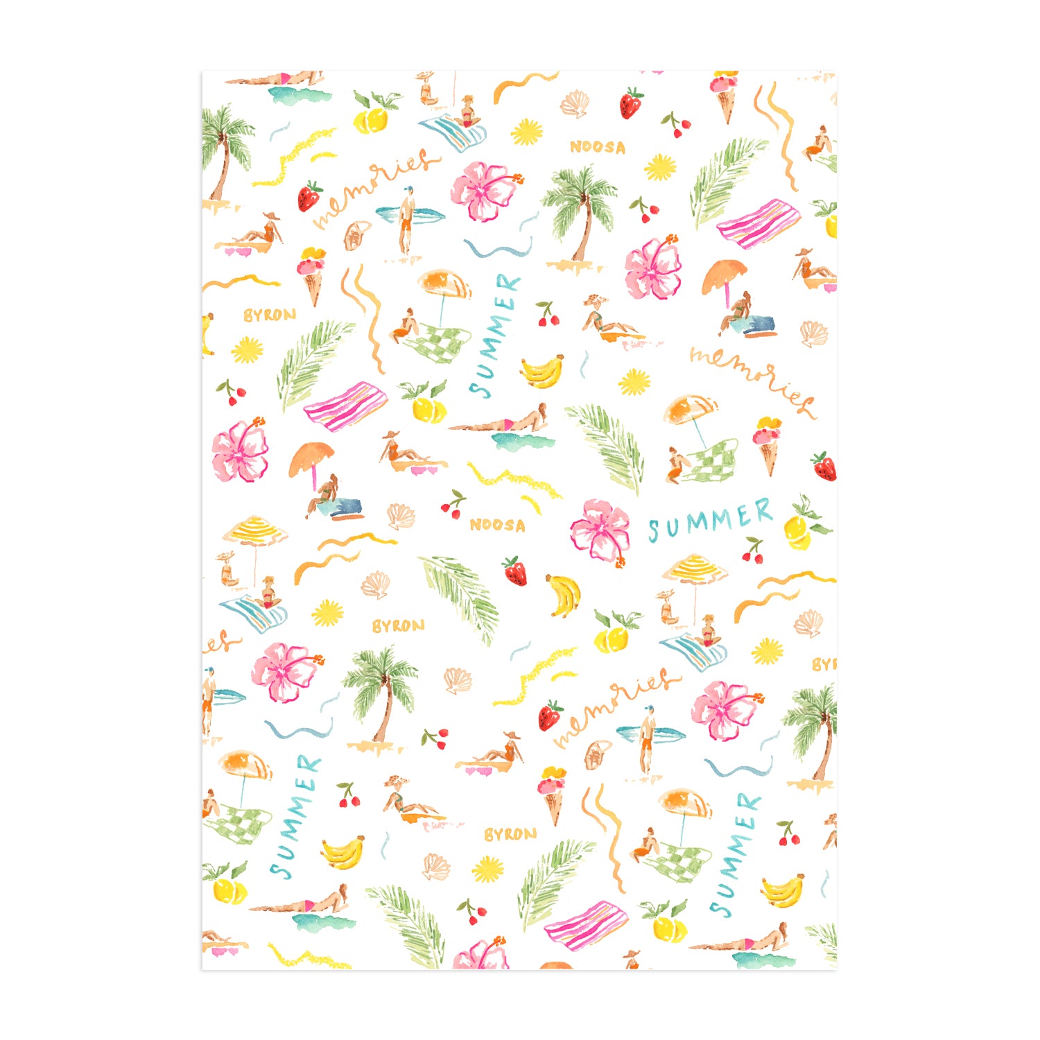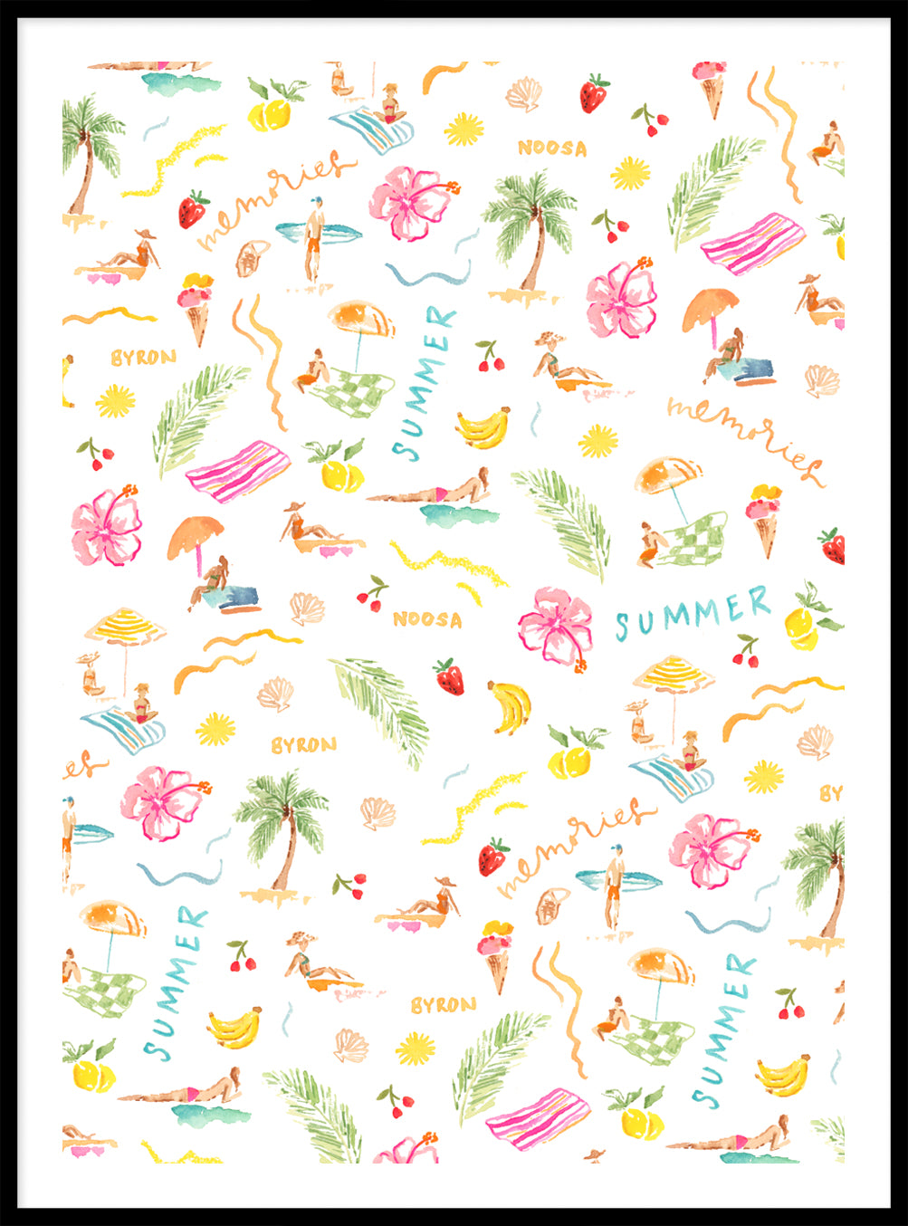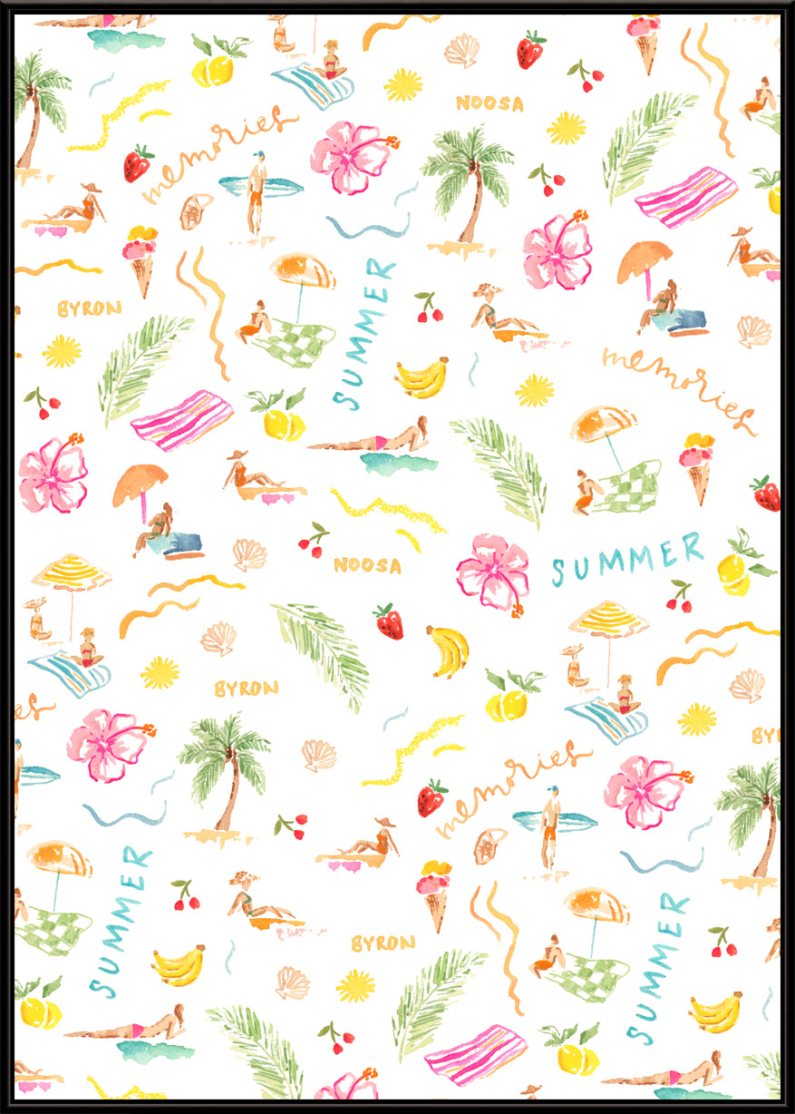 Iconic Noosa beach style, 'Summer' captures the vibrant, carefree weekends spent on the coast in a playful, joy infused palette. This piece evokes visions of colourful beach towels, a sea of umbrellas, surfboards, ice-cream, salty skin and perpetually sandy feet.