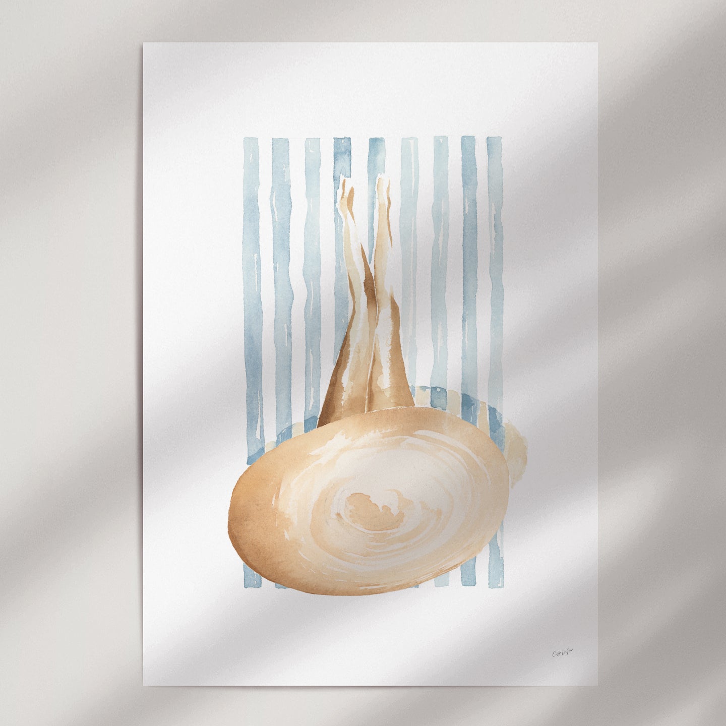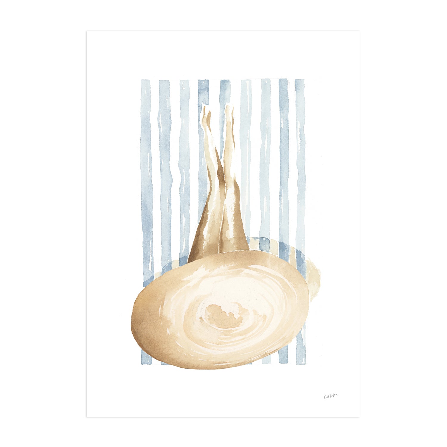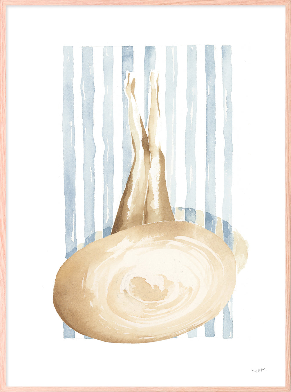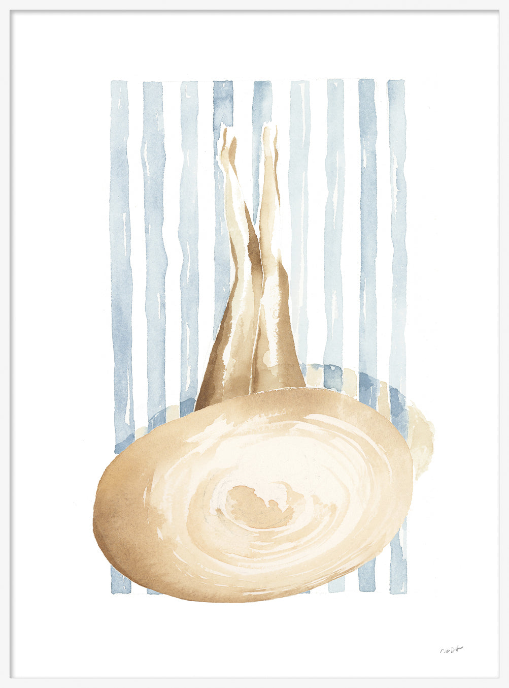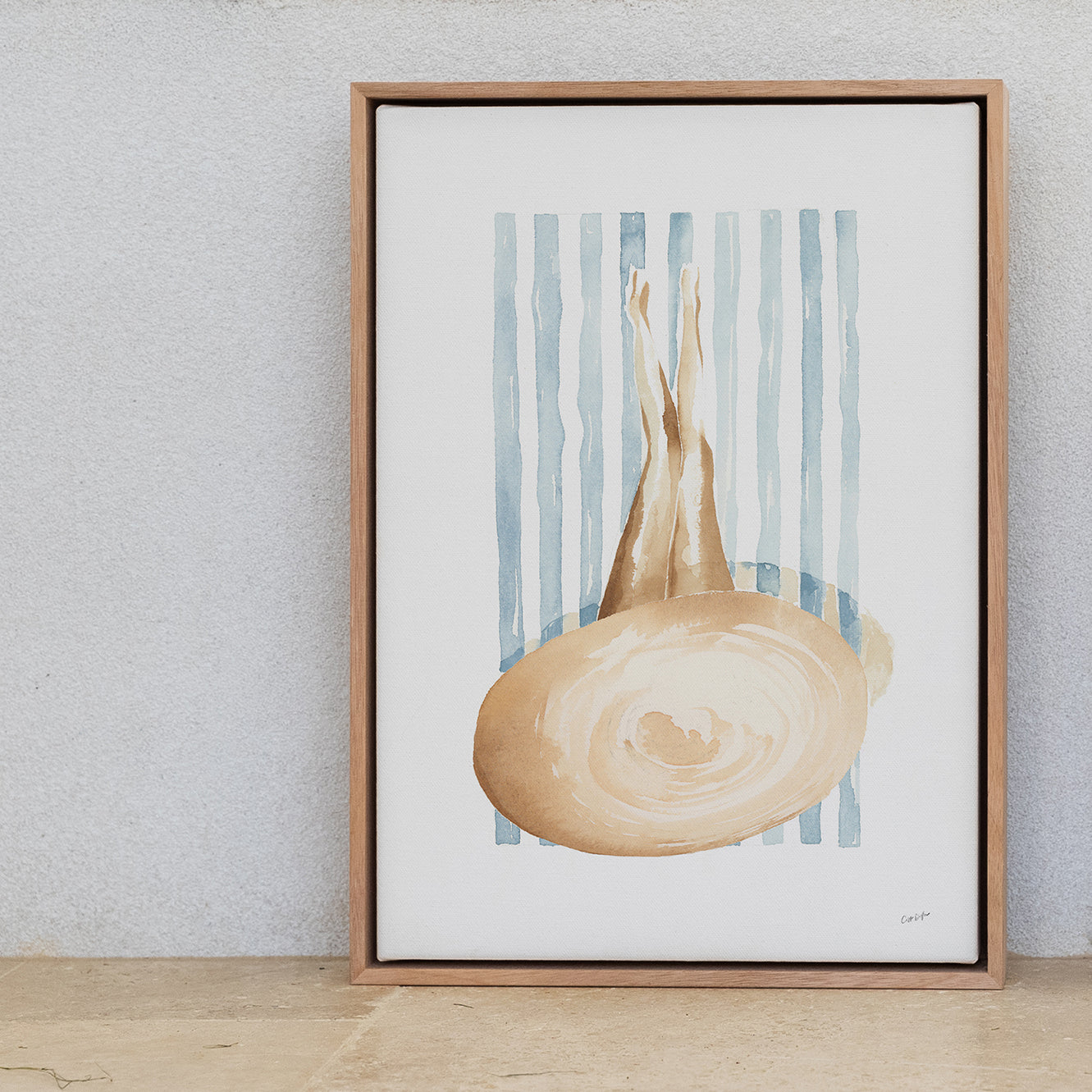 Sunbathe conjures up visions of sun-kissed skin, tan lines and salty beach waves - hand painted in watercolour, this piece will bring effortless coastal style into any space.