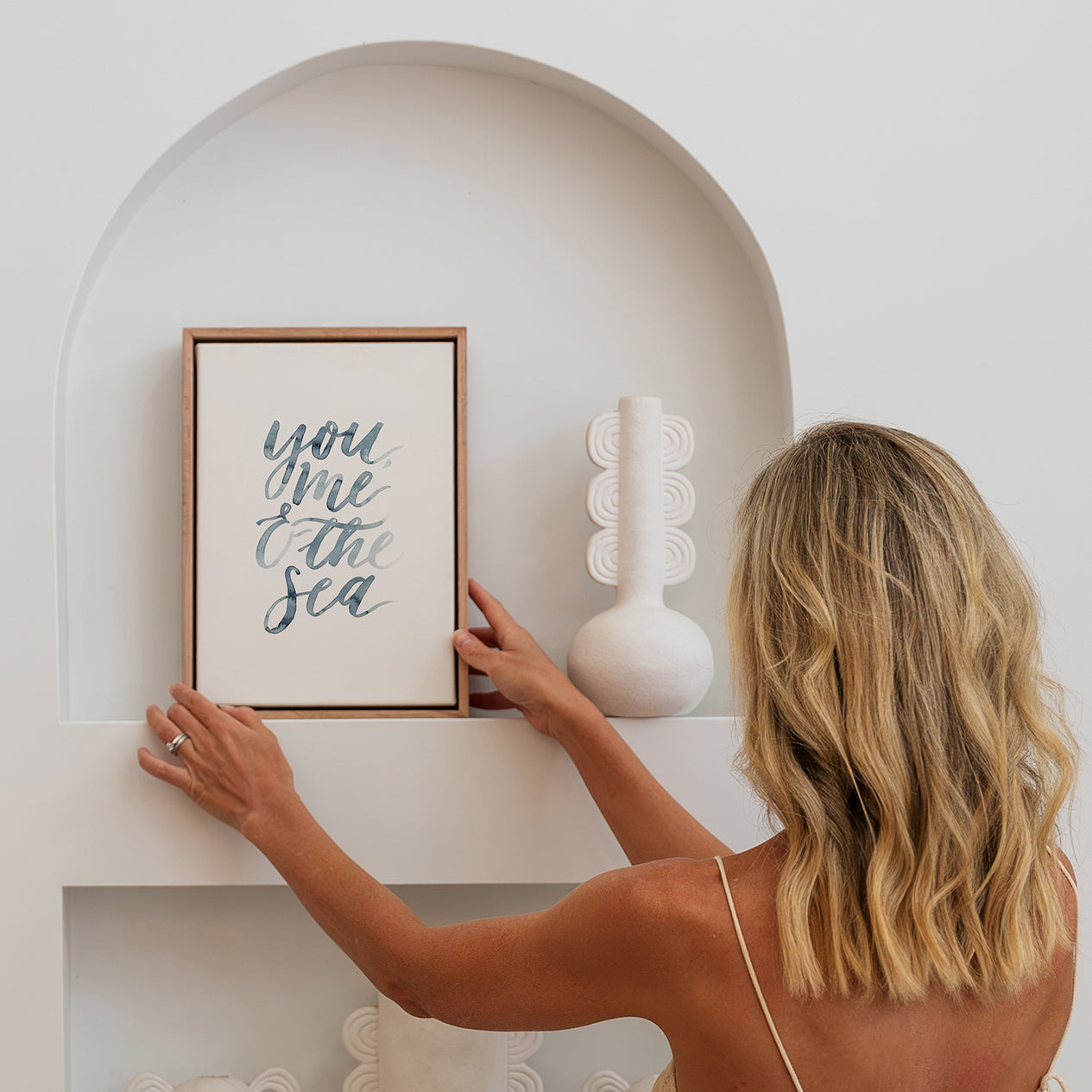 In gorgeous beachy blues, this stunning hand-lettered piece is the epitome of understated coastal style - perfect as a stand alone statement piece or adding to your gallery wall!